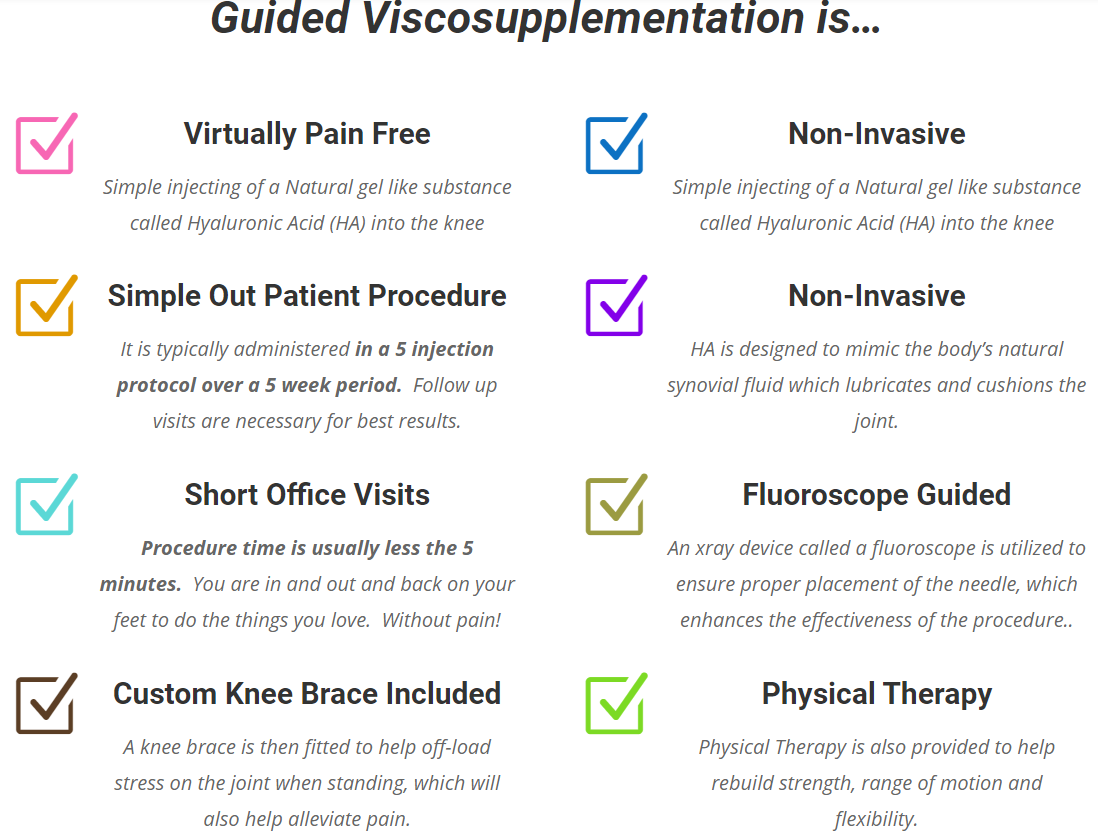 At Top Medical Center, we treat knee pain using a process called Guided Viscosupplementation. This is a simple, pain-free procedure that shows results, fast!